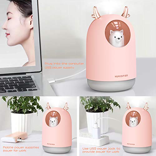 Umidificatore Mini - Wisdom1674 Mini USB Umidificatore a Ultrasuoni da 300 ml, Umidificatore Silenzioso Portatile con Funzione Luce Notturna per Bambini, Casa, Camera da Letto, Ufficio (Rosa)