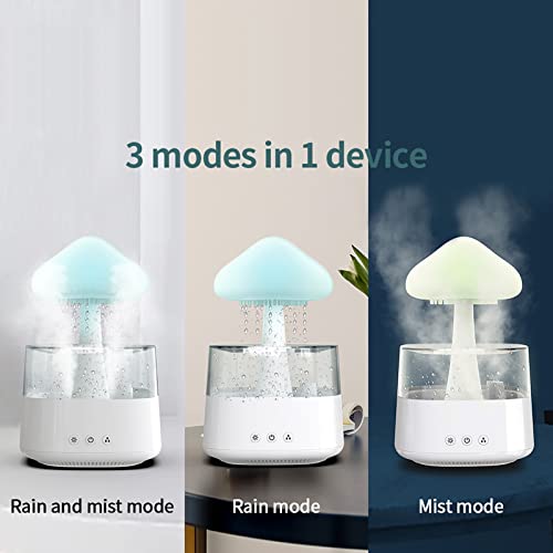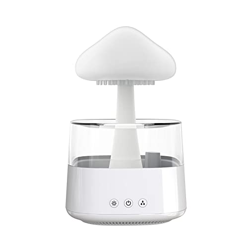 Umidificatore Nuvola Pioggia, diffusore Oli Essenziali, Simpatica Lampada Funghi con 7 Colori Che cambiano luci della scrivania, Fontana dell'Acqua Suono Goccia casa, Ufficio e Sala (Bianco)