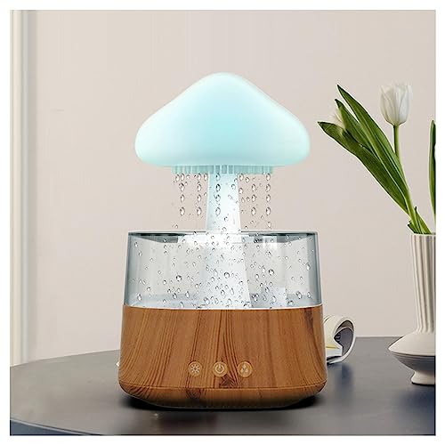 Umidificatore Per Nuvole Di Pioggia, Con 7 Colori A Led 450ml,Funzione Cronometraggio Umidificatore Fungo, Adatto A Camera Da Letto Dell'Ufficio,WoodGrain