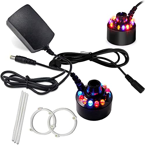 Umidificatore ad ultrasuoni Fogger Umidificatore 12 LED Stagno fontana con adattatore di alimentazione Nero