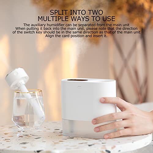 Umidificatori per Camera da letto, Umidificatore a nebbia fredda confortevole da 450 ml con umidificatore ausiliario, Umidificatore a doppio spray con luce calda per la camera dei bambini(bianco)