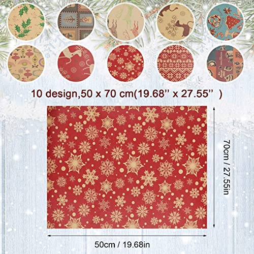 UMIPUBO 6/10/15 Fogli di Carta da Regalo Natalizia Assortiti,Foglio di Carta da Imballaggio Kraft,for Regali Compleanno, Anniversari, Capodanno Matrimoni E Natale (C/10 pezzi)