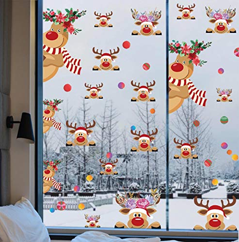 UMIPUBO 6 Pec Adesivi Natale, Corona Carina Renna Babbo Natale,3D Adesivi Elettricità Statica,DIY Stickeri Decorazioni Feste,Casa Negozio Finestre Murali Vetro
