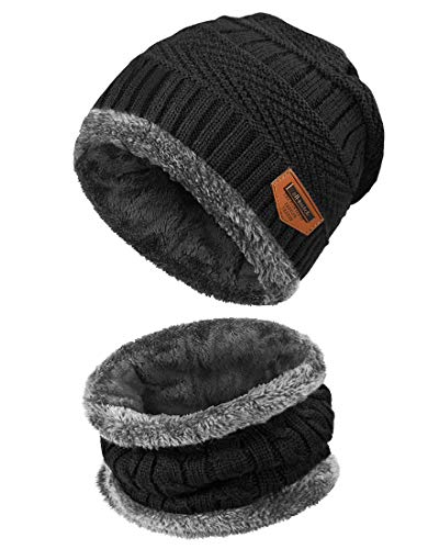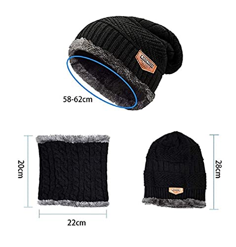UMIPUBO Cappello Uomo Invernale Berretto Uomo in Maglia con Sciarpa (Nero)