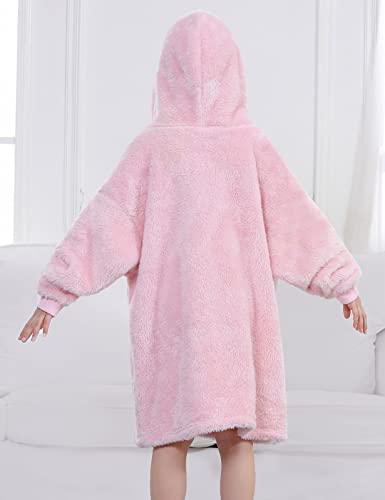 UMIPUBO Coperta con Cappuccio per Bambini Oversize Felpe con Cappuccio Morbido Gigante Sherpa con Tasca Pullover Blanket Hoodie Coperta indossabile per Ragazza, Ragazzo (Rosa, Taglia Unica)