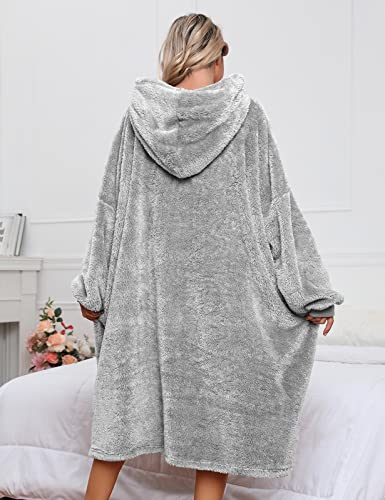 UMIPUBO Coperta con Cappuccio Coperta Indossabile Oversize Donna TV Blanket Pullover Hoodie con Tasca Morbida Felpa con Coperta Sherpa Fleece per Adulti, Uomo, Donne, Adolescenti(Grigio Chiaro)