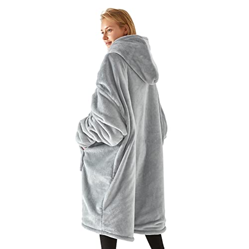 UMIPUBO Felpe con Cappuccio Uomo Donna Coperta TV Cerniera Oversize Pullover Blanket Hoodie Confortevole Felpa con Coperta Sherpa Fleece Jumper Gigante con Cappuccio(Grigio Chiaro, Taglia Unica)