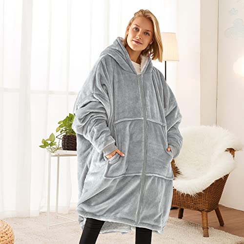 UMIPUBO Felpa con Cappuccio Sherpa Oversize Indossabile Felpa con Cappuccio Coperta Donna Pile Ultra Peluche Grande Tasca con Cerniera Felpe Giganti per Adulti Uomini Donne Adolescenti Taglia Unica per Tutti (Grigio Chiaro, Taglia Unica)