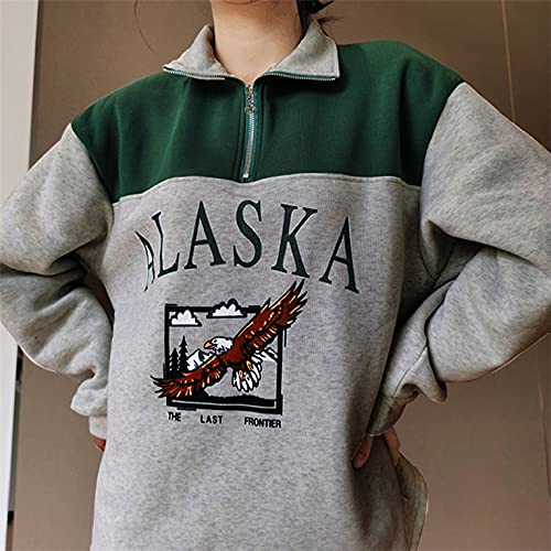 UMIPUBO Felpe Donna Invernale, Felpa a Maniche Lunga con Cerniera e Colletto Alto Graphic Aquila Zip Sweatshirt Pullover Autunnale e Inverno Casual Oversize Tops per Uomo Donna Teen(Verde,L)