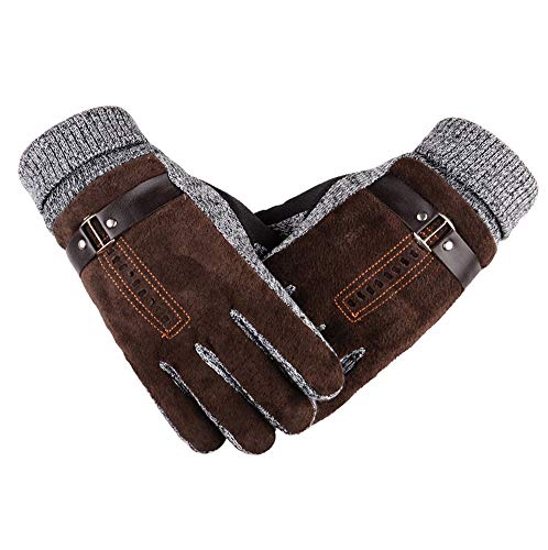 UMIPUBO Guanti Invernali Uomo Esterna Guanti Pelle Touchscreen Guanti per Smartphone (Marrone)