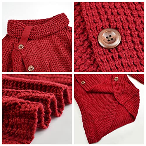UMIPUBO Maglione da Donna a Collo Alto Maglione Lavorato a Maglia a Maniche Lunghe Abbottonato Donna Pullover Tops Manica Lunga Caldo Maglione con Orlo Irregolare Autunno Inverno (Rosso, S)