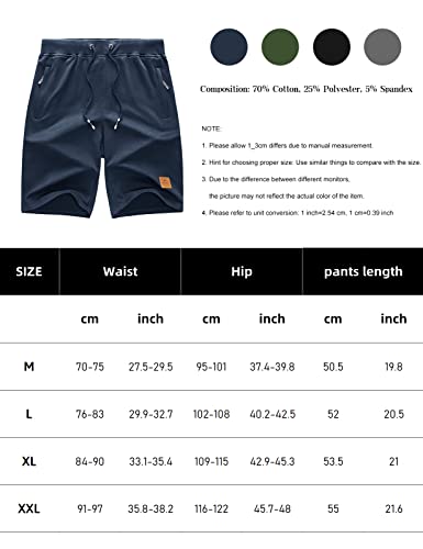UMIPUBO Pantaloncini Uomo Estivi Shorts Uomo Cotone Pantaloncini Palestra con Tasche Zipper Casual Sportivi Bermuda Corti per Running, Fitness, Allenamento (Navy, XL)