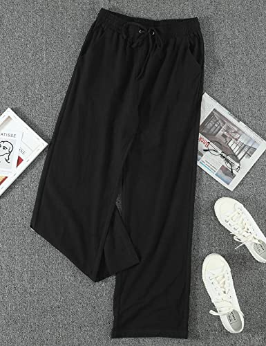 UMIPUBO Pantaloni Donna Estivi Casual Cotone e Lino Lunghi Pantaloni Larghi con Gamba Dritta Elastica con Coulisse Elegante Tinta Unita Pants con Tasche per Ladies (Nero, M)