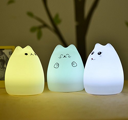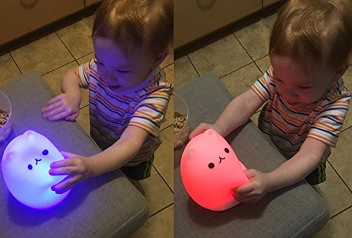 Umiwe Cute Kitty LED luce di notte dei bambini I bambini del silicone del gatto lampada di illuminazione ricaricabile 7-Color respirazione USB, luce bianca calda