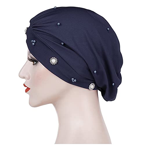 Unbekannt Hat Women 's hat Daisy Small Baotou hat Night Chemotherapie Turban Cross hat die Vorderseite Perlen muslimisch Cap Junge 2 Jahre, Blu marino, Taglia unica