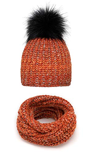 Unbekant Solvera_Set Scaldacollo Sciarpa ad Anello e Cuffia Berretto con pompon Morbidissimo (Rosso Mattone)