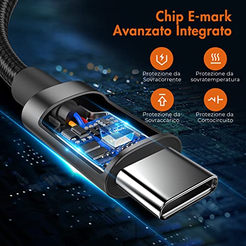 UNBREAKcable 2M Cavo USB-C a USB-C da 100W, Cavo USB Type C Ricarica Rapida in Nylon per MacBook PRO/Air, iPad Air 4/Mini 6/PRO 2020, Samsung Galaxy S22+/S21/S20, Huawei P40 PRO, Pixel, Switch - Nero
