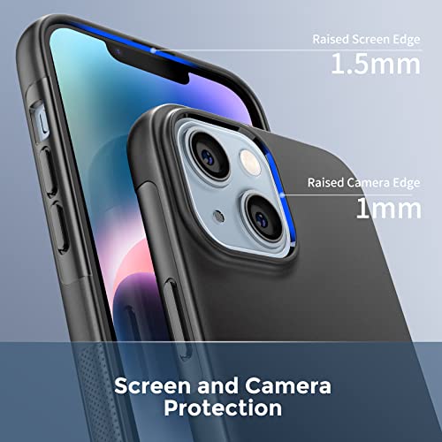 [Protezione dello schermo e delle fotocamere] - Il bordo anteriore della cover sporge di 1.5 mm rispetto allo schermo del telefono, e il bordo posteriore intorno alle fotocamere sporge di 1 mm rispetto alle lenti. Così quando il telefono è appoggiato su una superficie, sia a faccia in giù che a faccia in su, la iPhone 14 Plus cover garantisce la massima protezione e impedisce che schermo e lenti si graffino