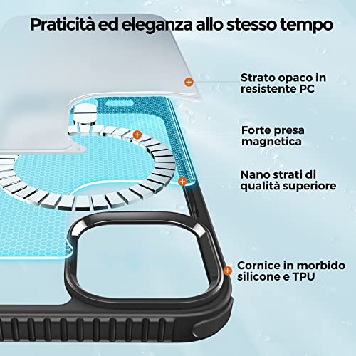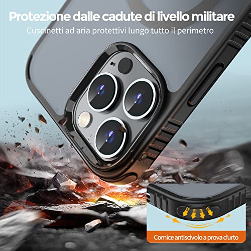 UNBREAKcable Cover Ricarica Magnetica per iPhone 13 PRO Max. Custodia iPhone 13 PRO Max con MagSafe Assorbimento Urti di Grado Militare,Antiscivolo, Retro Traslucido Opaco (6,7 Pollici) Nero,UBHP456