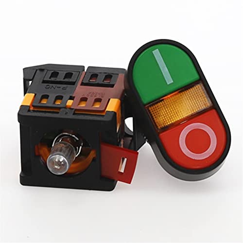 UNCASO 1 pz APBB-22N-25N Start-stop doppio pulsante interruttore con lampada LED (foro di montaggio 22mm 25mm) (DC12/24/36 AC220/380V) (colore: 24V)