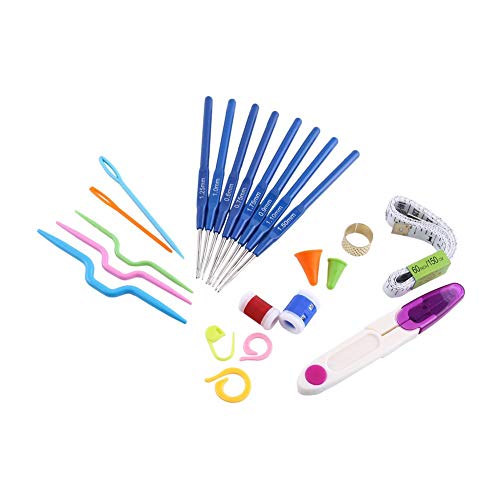 ღ L'intera gamma di set, ogni set di colori ha gli stessi accessori per strumenti di lavoro a maglia, come uncinetti ausiliari blu, pulsanti di conteggio, misura di nastro, punti, cappette, protezioni per punti dell'ago, forbici con impugnatura in plastica, ditali, ecc., Praticità molto pratica.