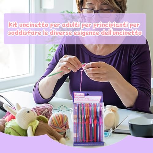 【Kit uncinetto da 41 pezzi】 Il set di uncinetti comprende 14 misure di uncinetti in alluminio colorato (2-10 mm), 20 segnapunti, 4 aghi di plastica e 2 infila fiori, adatti sia ai principianti che agli amanti dell'uncinetto esperti. Completa un fantastico progetto all'uncinetto con i nostri kit completi all'uncinetto!