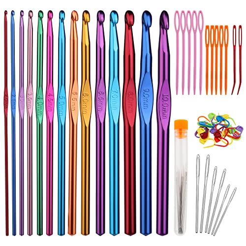 Qualità premium Facile da impugnare: il kit di uncinetti è realizzato in alluminio di alta qualità, ben realizzato, con marcature chiare e dimensioni standard. Design ergonomico, facile da impugnare e utilizzare, nessun dolore o fastidio al polso anche dopo un uso prolungato.