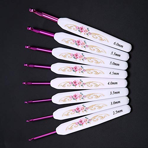 Uncinetto set ferri da maglia in alluminio con morbido strumento di tessitura di filati di plastica stampa floreale 8PCS(Large)