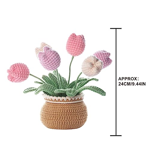 Kit Uncinetto per Principianti Completo, Kit di Uncinetto Floreale Fai Da te Per Bambini e Adulti, Kit di Uncinetto con Bouquet di Fiori in Vaso con Istruzioni Passo Passo e Video Tutorial (Tulipani)