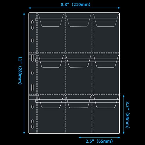 DIMENSIONE DEL PRODOTTO - Dimensioni intere: 28,0 cm x 21,0 cm/11,02'' x 8,27'', 5 pagine da 9 tasche, ogni dimensione della tasca è 65 mm x 84 mm