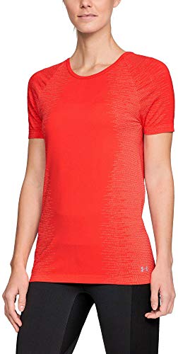 Under Armour 1318042-890 Top A Manica Corta, Donna, Radio Red/After Burn/Metallic Silver, XS