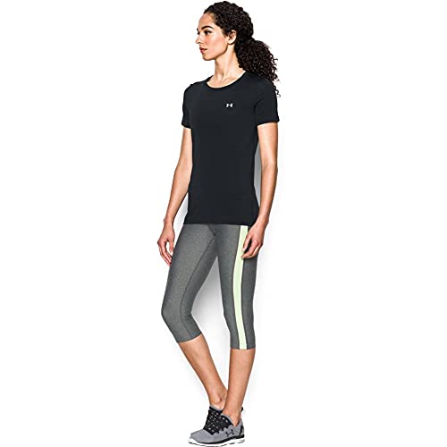 Under Armour UA HG Armour SS, T-Shirt Donna, Black/Metallic Silver, XS
