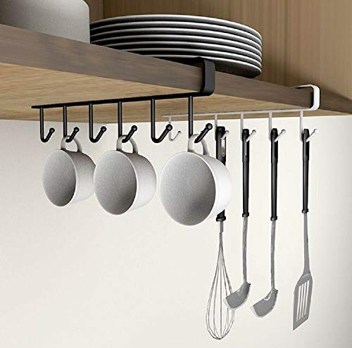 2 PCS Under Shelf Coffee Cup Mug Holder Hanger Storage Rack Cabinet Hook Kitchen, Multifunction Nail Free 6 Hook, Keys Hooks, Hanging Hooks Rack