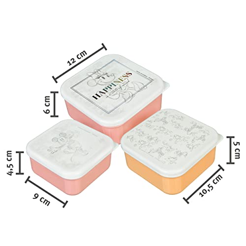 Undercover Set di 3 contenitori per il pranzo per bambini - Minnie Mouse - Contenitore per il pranzo - Scatola per il pranzo - Contenitore per il pranzo in plastica senza BPA - Contenitore per il