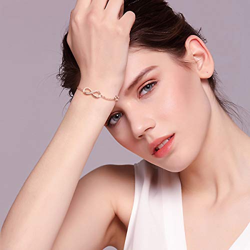 Unendlich U Bracciale da donna e ragazza con simbolo dell'infinito, in argento Sterling 925, con due stelle, regolabile e Argento, colore: Oro rosa, cod. B5432-rose gold