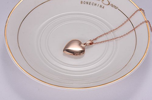 Unendlich U Collana da donna con medaglione alla moda apribile a forma di cuore, con portafoto per due immagini, realizzato in acciaio INOX (possibilità di incisione), acciaio inossidabile, colore: Rose Gold Blau, cod. IJ-207-r-necklace