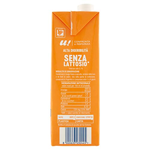 Unes Val d' Alpe Latte Parzialmente Scremato Uht a Lunga Conservazione alta Digeribilità senza Lattosio, 1L