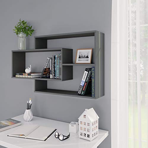 UnfadeMemory Mensole a Muro Cameretta Mensola a Cubo Scaffale Parete Legno MDF Grigie 104x20x58,5 cm in Truciolato