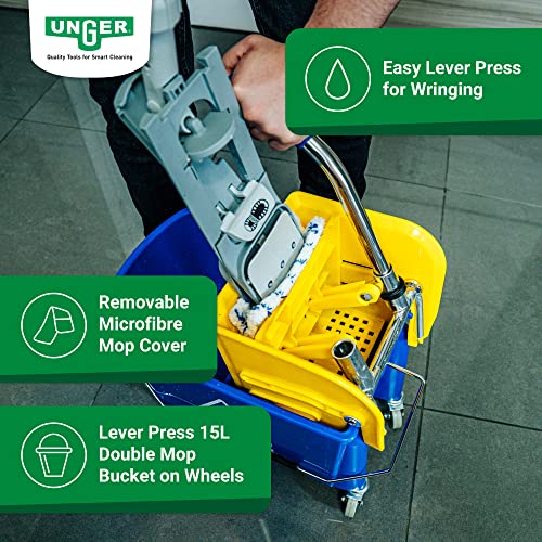 Unger 79078 79078-Set Professionale per la Pulizia del Pavimento, con Secchio Doppio, Panno in Microfibra e Supporto per Sistema Lavapavimenti Piatto, Giallo, 15 L
