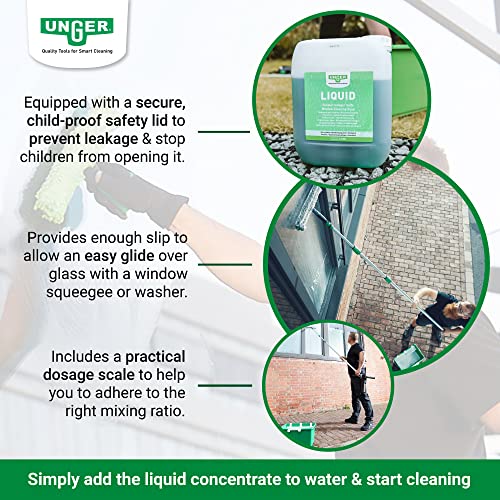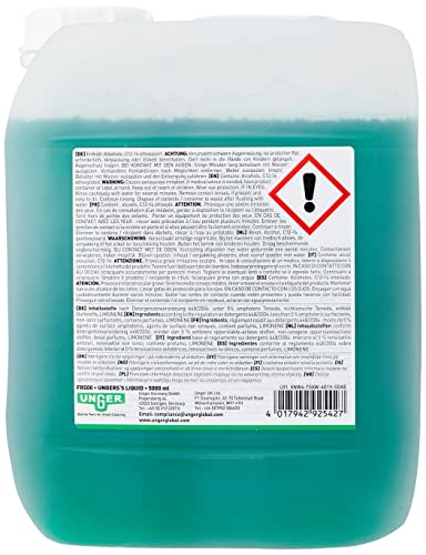 UNGER Detergente per vetri UNGER's Liquid (5 litri, concentrato, rapporto di miscelazione 1:100, pH neutro, finestra senza aloni, chiusura di sicurezza, scala dosaggio) FR500