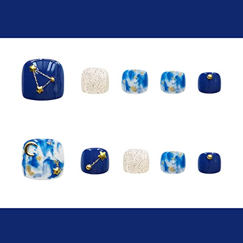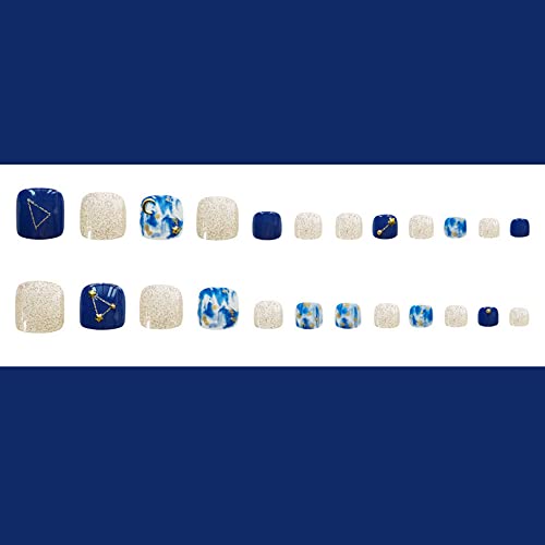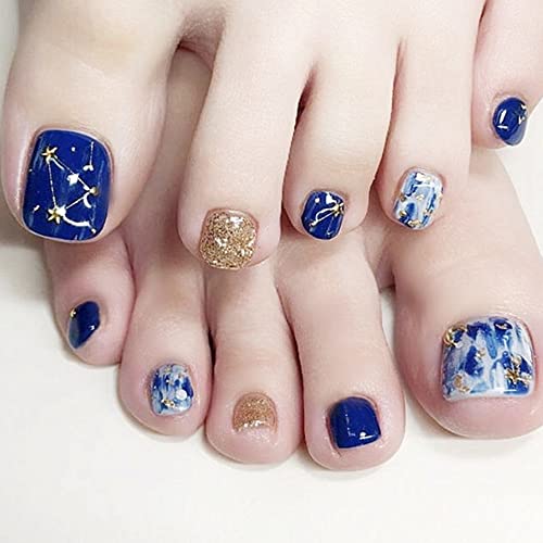 Unghia falsa per l'alluce Copertura completa Unghie del piede Unghie finte dell'alluce Stampa su unghie dell'alluce Copertura completa 24Pz. (BlueStar)