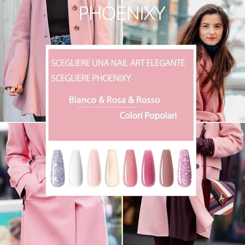 【Kit di Gel Ricostruzione Unghie】 Phoenixy Kit di gel ricostruzione unghie comprende 1 lampada per manicure da 48W, 8 gel per poly unghie, 1 base, 1 top coat, 1 matte coat e vari strumenti per le unghie, il kit di gel per unghie è conveniente e rappresenta un'ottima scelta per voi.