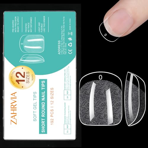 Tip Unghie Extra Corte a Rotondo - ZAHRVIA Punte a Copertura Completa Punte in Gel Morbido Punte per Unghie Corte Punte per Unghie Finte in Resina PMMA, 192 Pezzi 12 Diverse