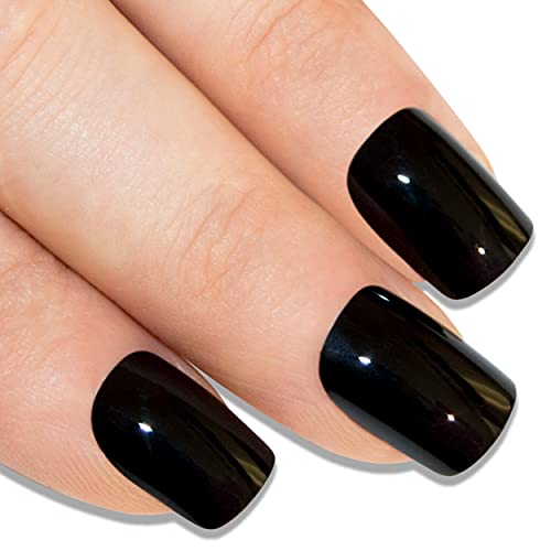 Unghie finte Bling Art Nero Lucidato 24 Squoval Medio Finte punte in acrilico con colla