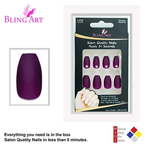 Unghie finte Bling Art Rosso Marrone Opaca Ballerina Bara 24 Lunghe Finte punte in acrilico con colla
