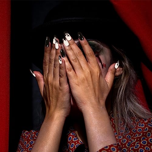 Accessori per il trucco di Halloween: queste unghie finte di Halloween progettate con motivi neri completeranno il tuo trucco di Halloween e porteranno un'atmosfera più spettrale per la tua festa horror.