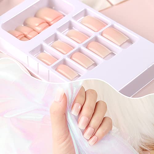 【Ideale:】Le unghie finte corte quadrate sono rosa sfumate, carine, eleganti, lucide, riutilizzabili e facili da applicare e rimuovere. Sono adatte per casa o salone di bellezza.