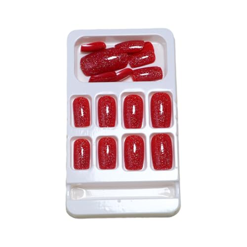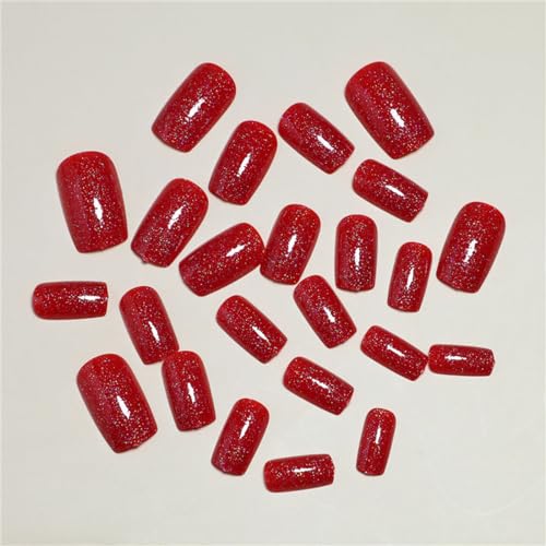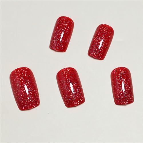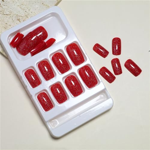 Unghie finte rosse lucide corte quadrate a pressione sulle unghie francesi per donne e ragazze manicure per nail art 24 pezzi
