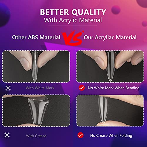 Materiale Acrilico di Alta Qualità: Le nostre punte per unghie finte sono diverse dagli altri materiali ABS, utilizziamo materiale acrilico, non ci sono pieghe e non è facile da rompere. Nessun danno alle unghie o al corpo e rende le unghie resistenti e naturali.