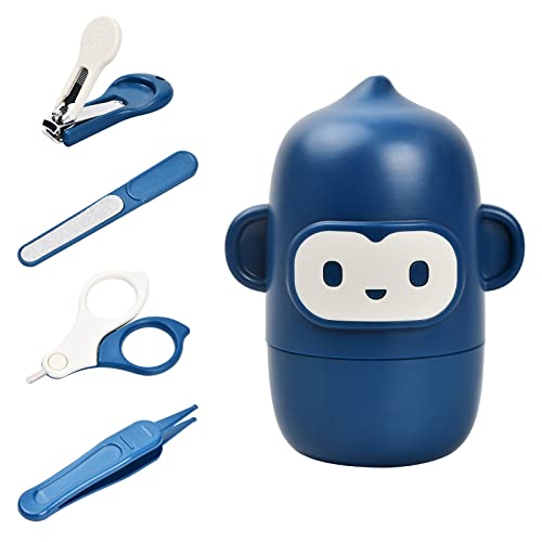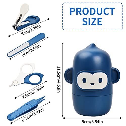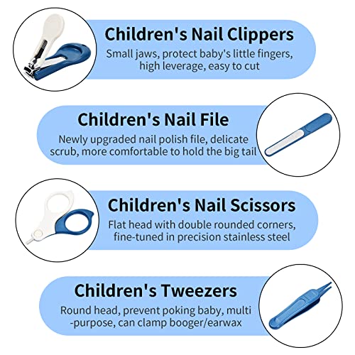 Kit per Unghie Neonati 4-in-1 con Forbicine, Tagliaunghie, Lima e Pinzetta in Custodia Kit Cura Delle Unghie Manicure per Bambino Neonatale kit Sicuro per Manicure per Unghie per Bambini, Blu